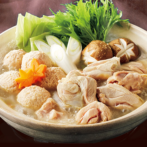 水たき料亭〈博多華味鳥〉が独自の飼料と飼育環境で育てた銘柄鶏「華味鳥」。その切り身やつくねをじっくりと炊き出した鶏ガラと丸鶏のスープで味わうセットをご家庭でご堪能ください。