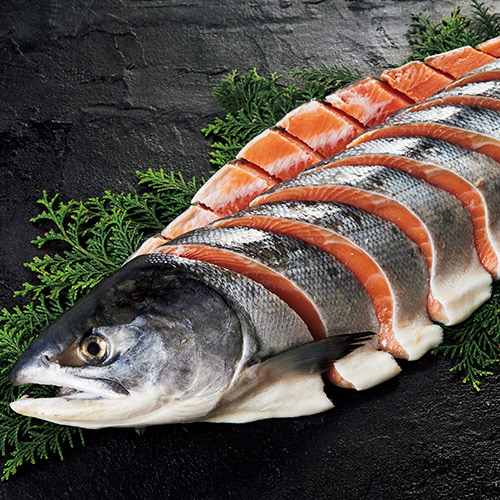 北の海で獲れた鮭を姿切りでお届け。北の海で漁獲された鮭を塩漬した「新巻鮭」は、年末年始の贈り物にも好適です。旨み豊かな秋鮭、脂のりがよい紅鮭、さっぱりと上品な味わいの白鮭をそれぞれ食べやすい姿切りにしてお届けします。