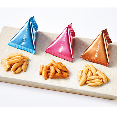 【WEB送料無料】東京国立博物館 限定ギフト 三代目大谷鬼次の江戸兵衛・紫式部図 柿の種詰合せ牛たんやチーズ、めんたいこやもんじゃ焼きなど、バラエティー豊かな4種の風味の柿の種を詰合わせました。食べきりサイズの三角パックでお届けします。