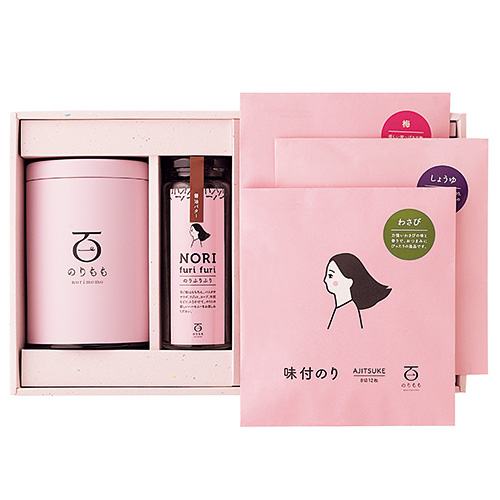 百年先にのりをつなげる。〈のりもも〉からギフトBOX。厳選した海苔に味付けした逸品と香り高いばら干のりを使用した「のりふりふり」のセットをご用意しました。