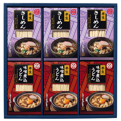 「きしめん」と、特製の味噌を使って煮込む「味噌煮込うどん」を詰合わせた名古屋名物の贈りものです。