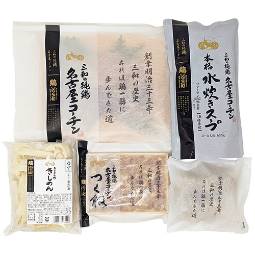 〈鶏三和〉の純鶏名古屋コーチンの弾力ある肉質と旨味を、本格水炊きスープで存分にご堪能いただける鍋セットです。