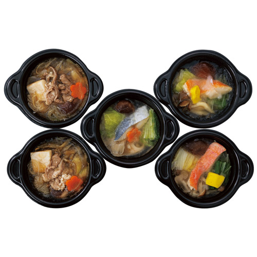 松阪牛すき焼風鍋、出汁が薫る醤油仕込みの金目鯛、ゆず風味のさわらのお鍋。簡単便利に熱々のお鍋をお楽しみいただけます。